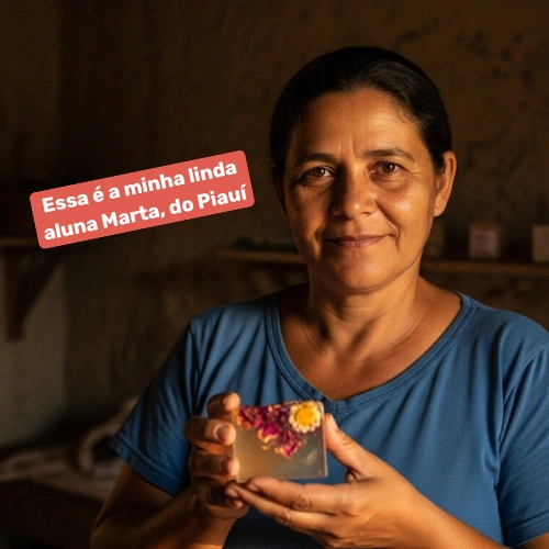 Seus ensinamentos já foram compartilhados em aulas, eventos e workshops, mostrando como qualquer pessoa pode transformar sabonetes lindos… feitos com poucos ingredientes e baixo investimento… em uma fonte real de renda, mesmo começando do zero.