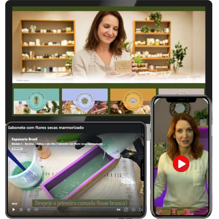 Isso significa que você vai saber exatamente o que comprar, onde comprar e como garantir o melhor custo-benefício para suas produções. Assim, você não perde tempo nem dinheiro procurando materiais e já começa com tudo em mãos para produzir seus sabonetes!